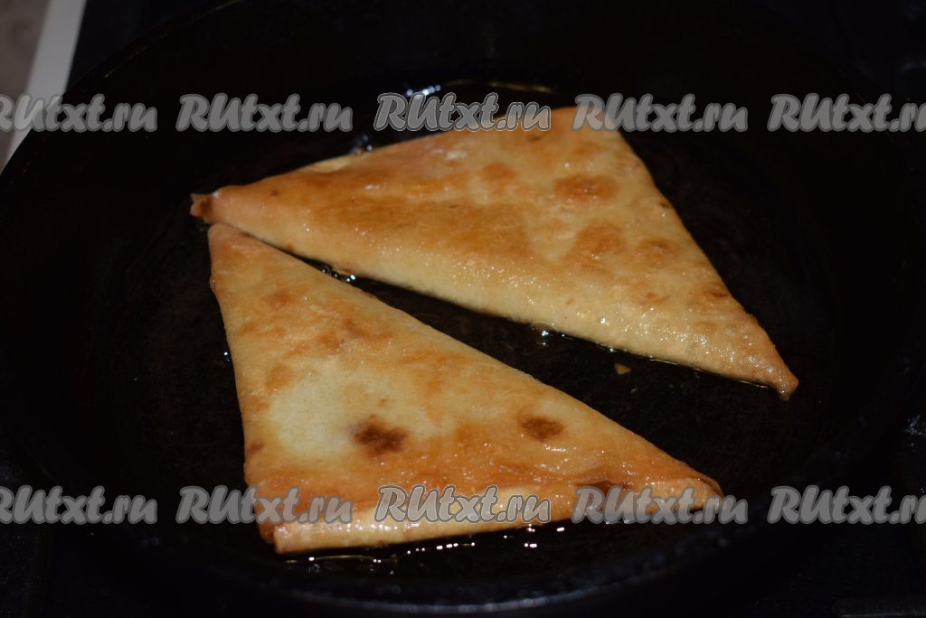 Края у такого треугольника закрыты со всех сторон, это предотвратит вытекание мясного сока и образования брызг во время жарки.