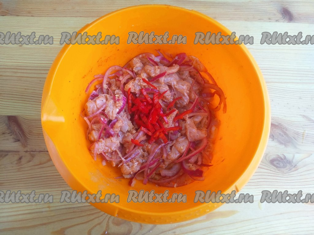 Для рецепта лучше всего подойдёт мягкое куриное филе бройлера. Количество горького перца можно корректировать по своему вкусу. Для хранения и маринования используйте пластиковую или стеклянную посуду с крышкой.