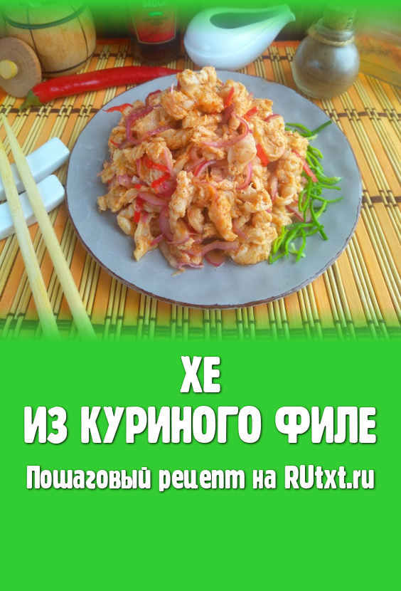 Корейское блюдо "Хе" готовится из сырых продуктов с добавлением острого маринада и большого количества специй. Для него могут использоваться любые овощи, мясо, рыба или морепродукты. Предлагаю вам рецепт приготовления очень вкусного, в меру острого хе из куриного филе, которое можно подать к столу в качестве холодной закуски. Мясо не проходит термообработку, маринуется в уксусе с большим количеством специй, а после "заваривается" очень горячим маслом.