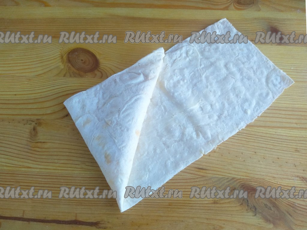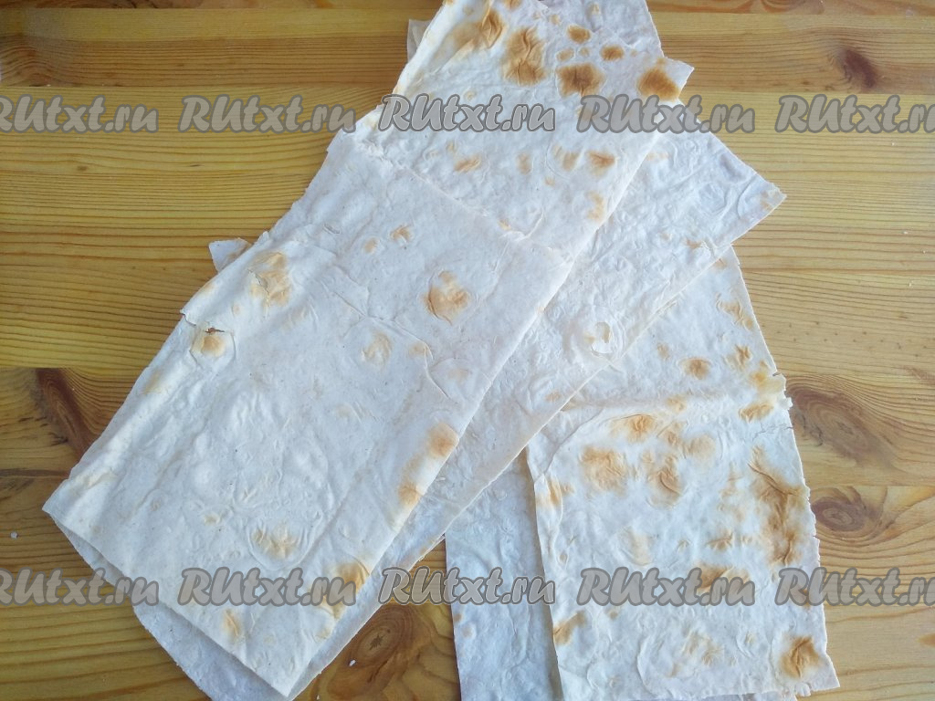 Лист лаваша разрезать на 4 части шириной около 7-8 см.