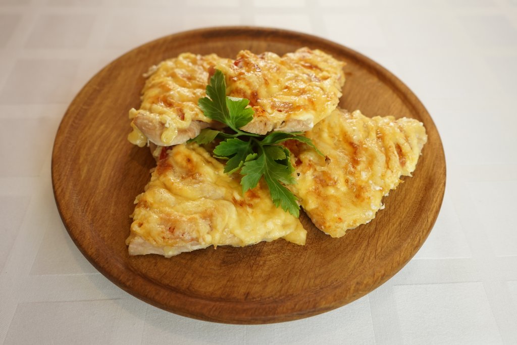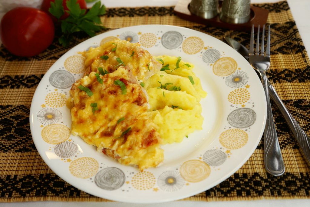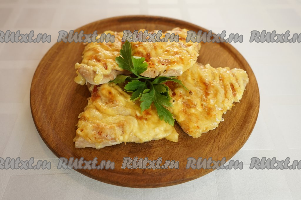 Подавать отбивные из индейки с помидорами и сыром, приготовленные в духовке, нужно непременно горячими. На гарнир отлично подойдёт картофельное пюре. Сервируем блюдо и зовём всех к столу.