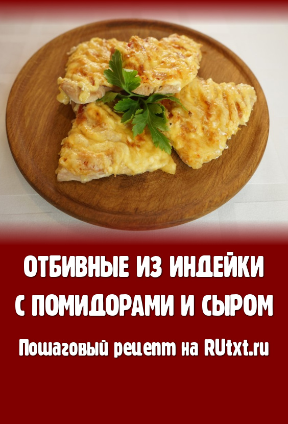 В последнее время всё более популярным становится мясо индейки, обладающее нежнейшим вкусом. Помимо этого, индюшатина богата высоким содержанием белка, витаминов и микроэлементов. Самой диетической частью тушки является филе. Именно из него предлагаю приготовить в духовке вкусные, сочные отбивные с помидорами и сыром. Блюдо отлично подойдёт как для праздничного стола, так и для повседневного!