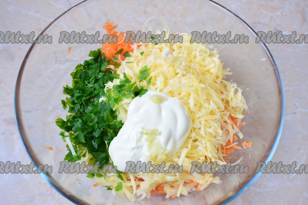 Добавьте майонез и все ингредиенты салата хорошо перемешайте друг с другом.