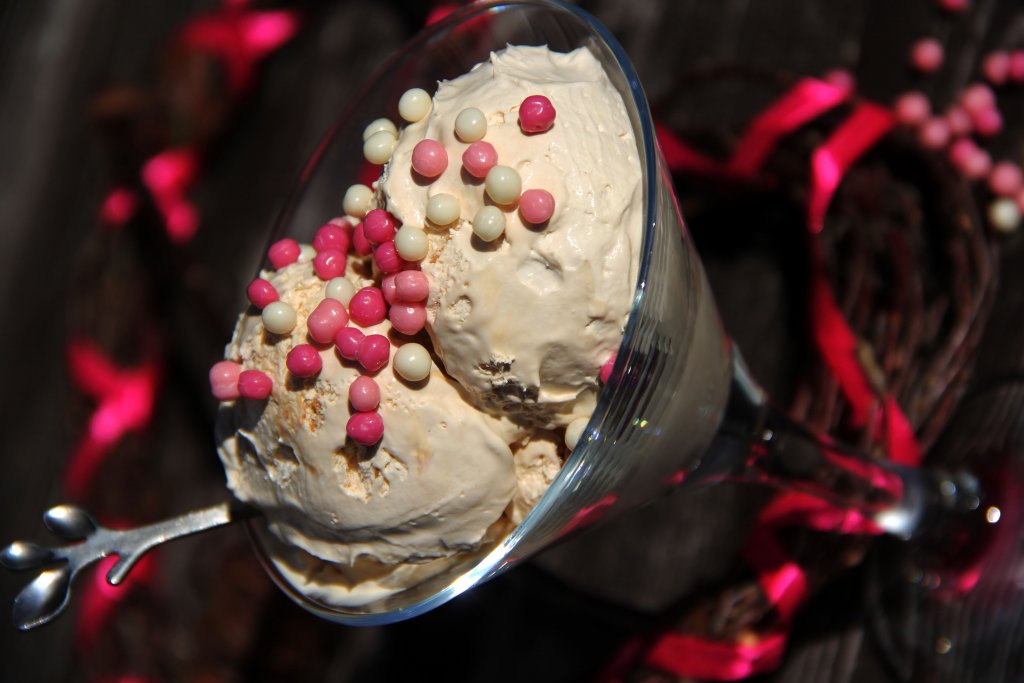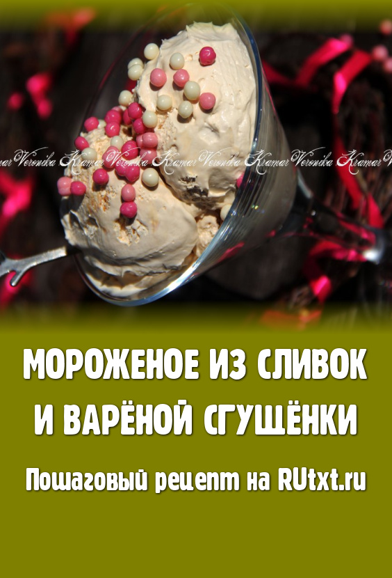 Из сливок для взбивания и варёной сгущёнки можно достаточно просто в домашних условиях приготовить вкусное, нежное мороженое. Рецепт предельно прост. Для приготовления этого лакомства можно взять сливки жирностью 33% и взбить их с сахарной пудрой, а можно использовать сливки для взбивания на растительных маслах, в состав которых входит уже сахар. Десерт, приготовленный по этому рецепту, прекрасно замораживается. Мороженое получается нежнейшим, без льдинок!