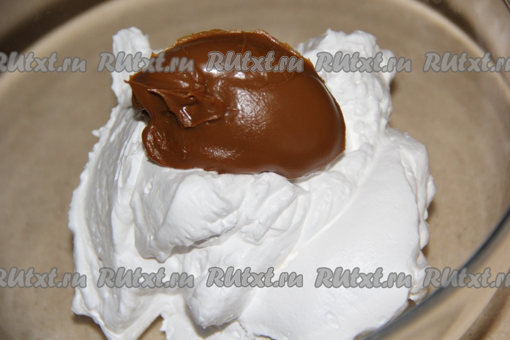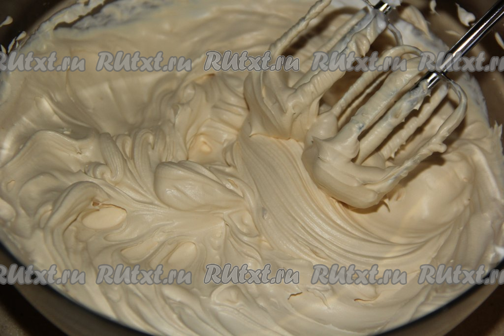 Перемешать сливки со сгущёнкой до однородного состояния (я перемешала миксером).