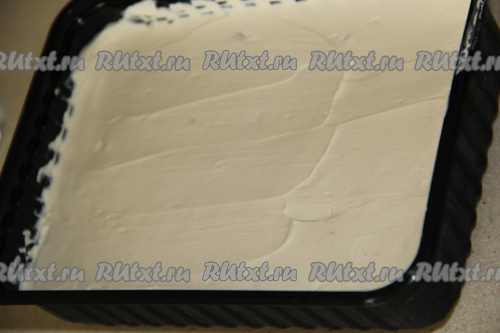 Переложить получившуюся массу в лоток и разровнять. Поставить мороженое в морозилку на несколько часов (до полного замораживания).