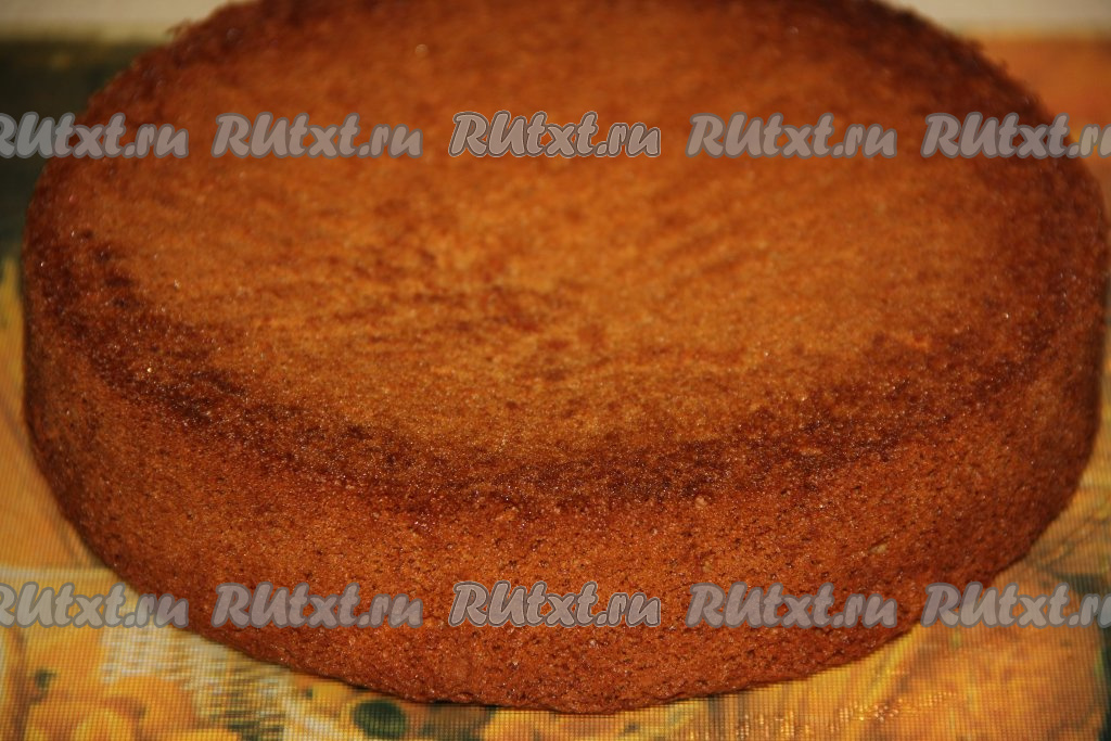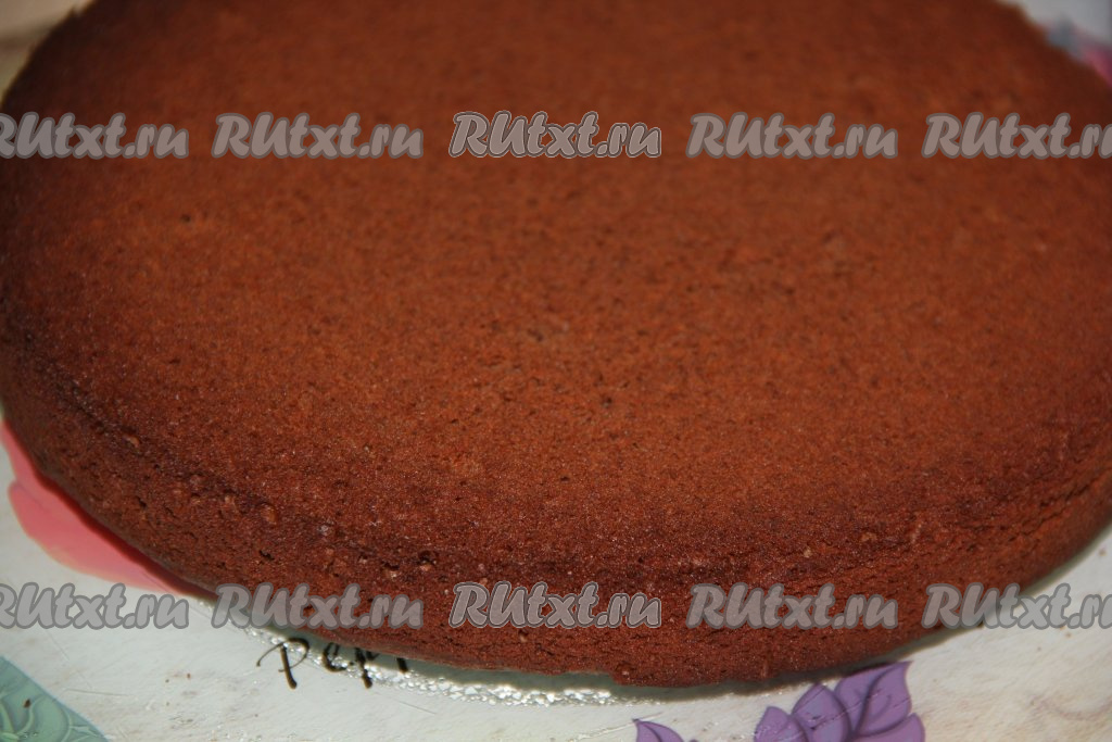 Выпекать шоколадный бисквит, примерно, 35-40 минут при температуре 180 градусов в разогретой духовке (готовность проверить, проколов бисквит сухой шпажкой). Готовый бисквит, достав из формы, полностью остудить на решётке.