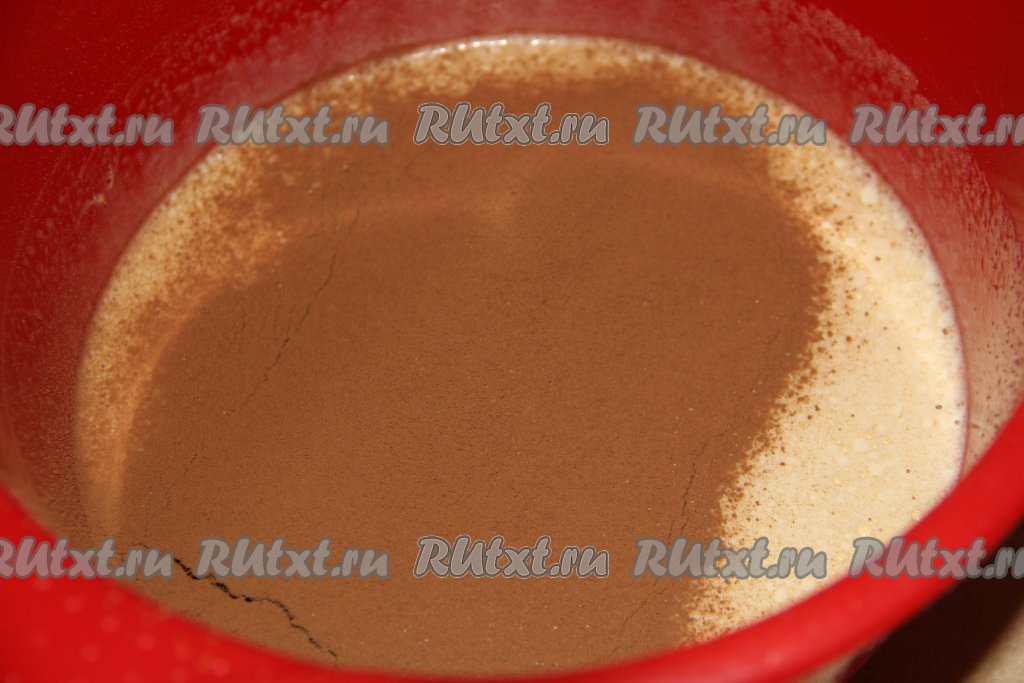 Затем добавить просеянное какао.