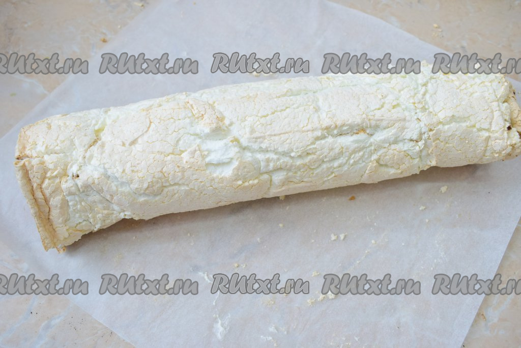 Сверните меренгу с кремом в рулет.
