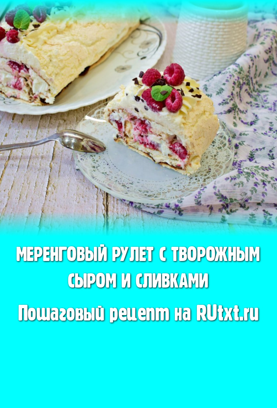 Меренговый рулет, приготовленный с творожным сыром и сливками, получается нежным, лёгким и необыкновенно вкусным. Угощайтесь!