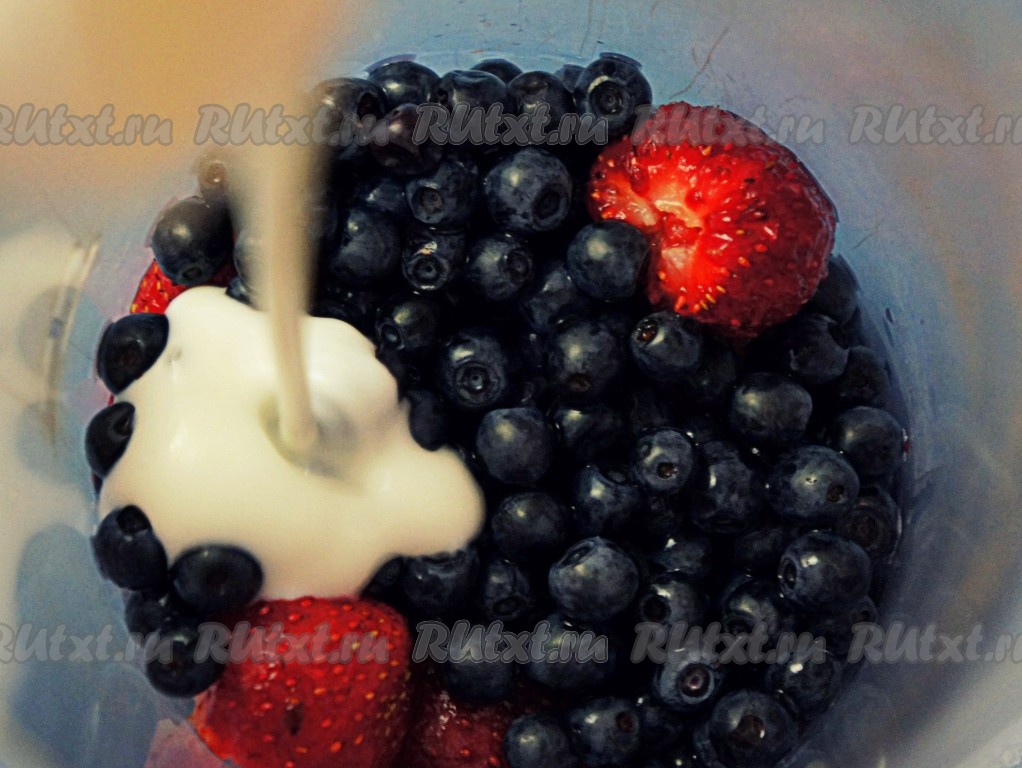 Добавить к ягодам кефир.
