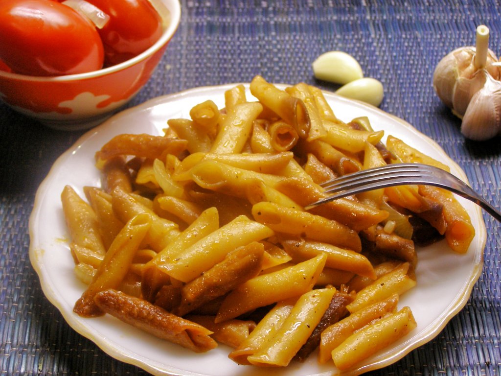 Если вам надоели обычные варёные макароны, попробуйте их пожарить. Макароны, жаренные на сковороде, - не совсем обычное блюдо, у них интересный, непривычный вкус. Лук, чеснок, томатная паста и специи придают блюду ещё больше вкуса и аромата. Отваривать макаронные изделия предварительно не нужно. Блюдо получается очень вкусным, его можно подать и в качестве основного, и в качестве гарнира. Для приготовления лучше брать макароны "трубочки" или "перья". Приготовьте жареные макароны и они, наверняка, понравятся всей семье!