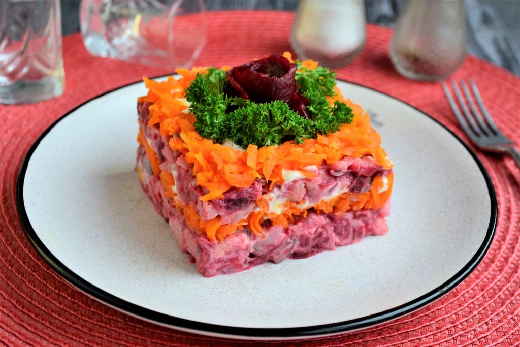 Для любителей известного и популярного салата предлагаю рецепт "Ленивой селёдки под шубой". Этот вариант салата готовится в разы быстрее, чем привычная "Сельдь под шубой", а по вкусу получается ничем не хуже. Конечно, для "ленивой селёдки под шубой" можно просто ингредиенты натереть на тёрке, нарезать и смешать с майонезом, но мне захотелось сделать этот салатик нарядным, ведь и для обеда или ужина блюда должны быть яркими и аппетитными. Порадуйте своих близких таким салатом и он отлично впишется в меню вашего повседневного стола!