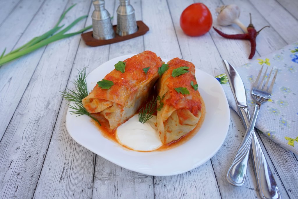 Голубцы - это знакомое с детства блюдо. Представляет оно собой шарики фарша с рисом, обёрнутые капустными листьями. Аналоги этого блюда есть в разных кухнях мира. Учёные полагают, что в русскую кухню это блюдо попало из турецкой или татарской кухни. По сути, это «долма», переделанная, исходя из имеющихся у славянских народов продуктов. Но, как бы там ни было, голубцы по праву любят и ценят в русскоговорящих странах. Предлагаю приготовить вкусные и сочные голубцы на сковороде в томатно-сметанном соусе.