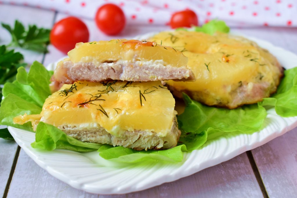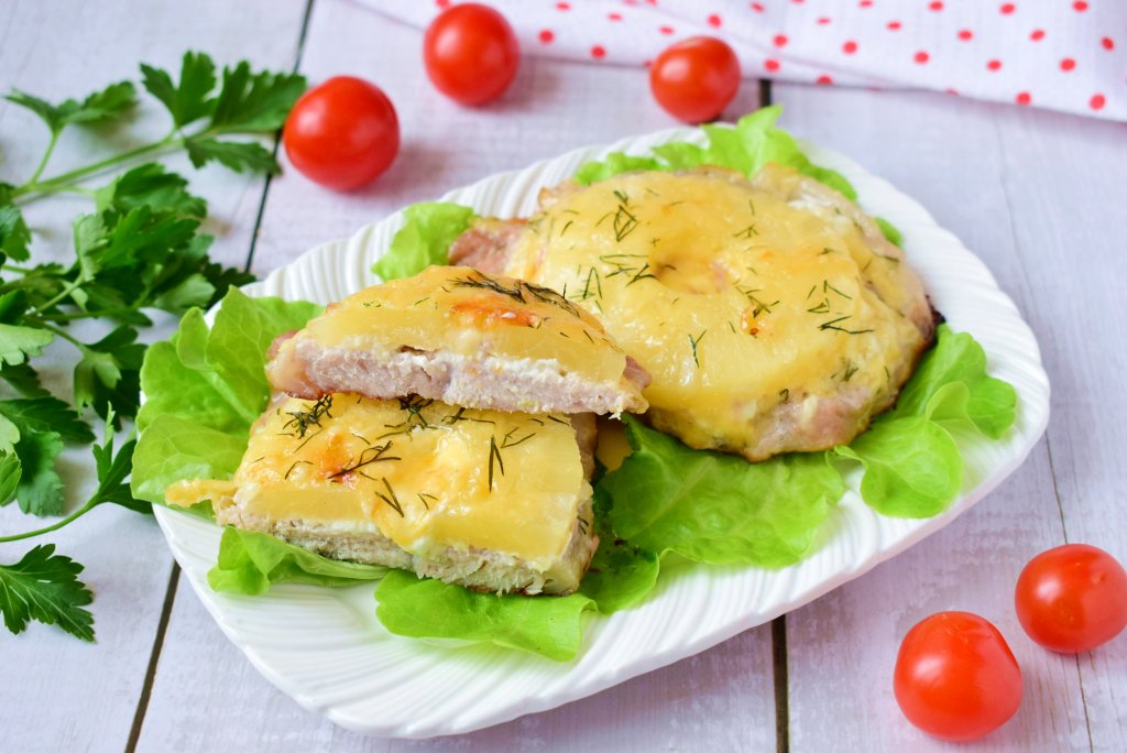 К столу подаём отбивные в горячем виде. Мясо получается сочным, с лёгкой сладостью от ананасов. Это блюдо станет достойным украшением стола и в будни, и в праздники, а его вкус, наверняка, понравится и вам, и вашим близким!
