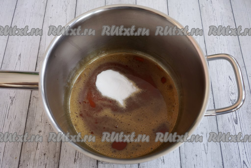 Для приготовления медового торта нам потребуется в первую очередь сам мёд. Я брала тёмный гречишный мёд, он обладает насыщенным вкусом, цветом и густой консистенцией. Липовый, думаю, тоже подойдёт. Главное - мёд не должен быть слишком жидким. Наливаем 100 грамм мёда в сотейник и ставим на средний огонь, прогреваем хорошенько, но не кипятим, снимаем с огня.