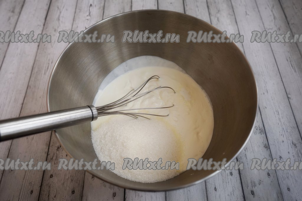Теперь можно заняться приготовлением крема. Для крема я советую использовать сметану жирностью не ниже 25%, а ещё лучше домашнюю. То есть магазинная сметана жирностью 20% точно не подойдёт - она жидкая и не будет держать форму. Сметана для крема должна быть очень холодной, тогда она густая. Сметанный крем не советуют взбивать миксером, лучше просто венчиком соединить 700 грамм сметаны, 160 грамм сахара и 10 грамм ванильного сахара и размешать до растворения сахара. Всё, сметанный крем для медового торта готов.