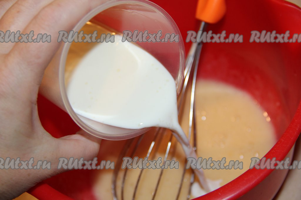Далее влить молоко и перемешать.