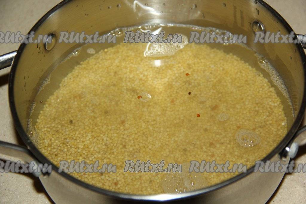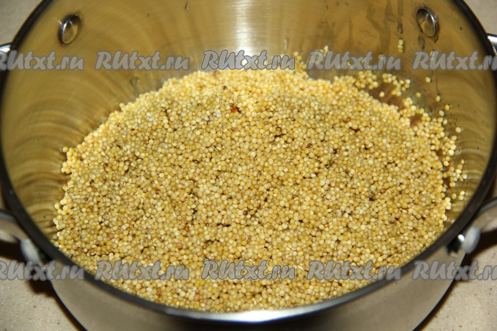Пшено хорошо промыть (до чистой воды), выложить в кастрюлю.