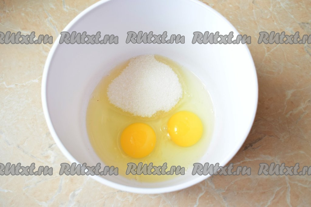 В достаточно глубокой чаше (глубокая чаша удобна тем, что при взбивании из неё не разлетаются брызги) соедините яйца с солью и сахаром.