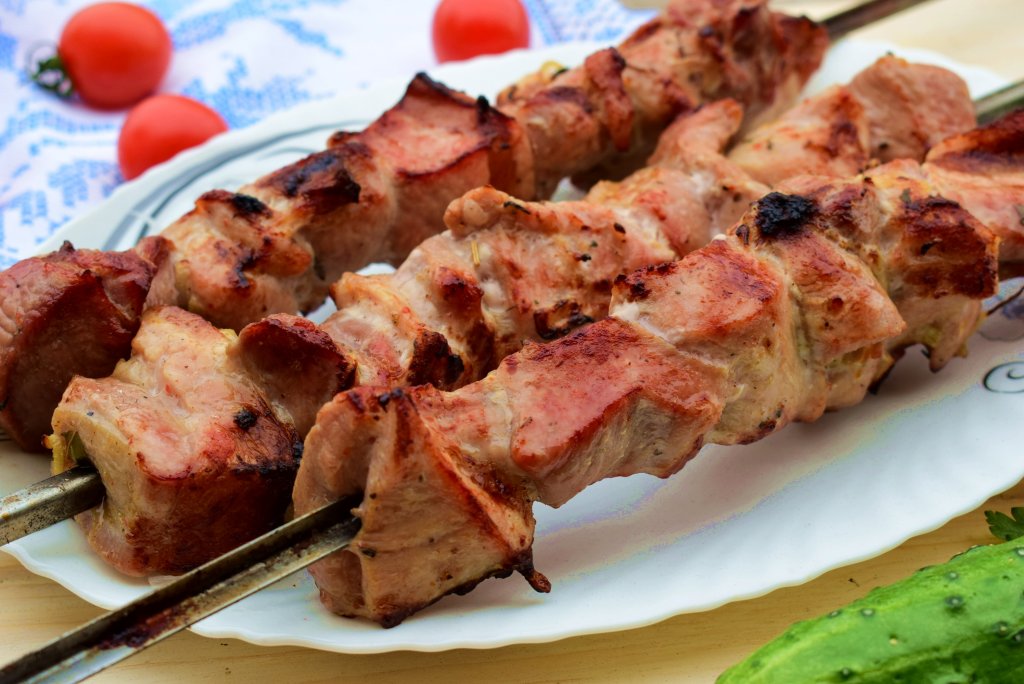 Готовый шашлык из свинины, замаринованный в луке и минералке, получается очень вкусным, нежным и сочным. Подавать его следует исключительно в горячем виде, можно прямо на шампурах.
