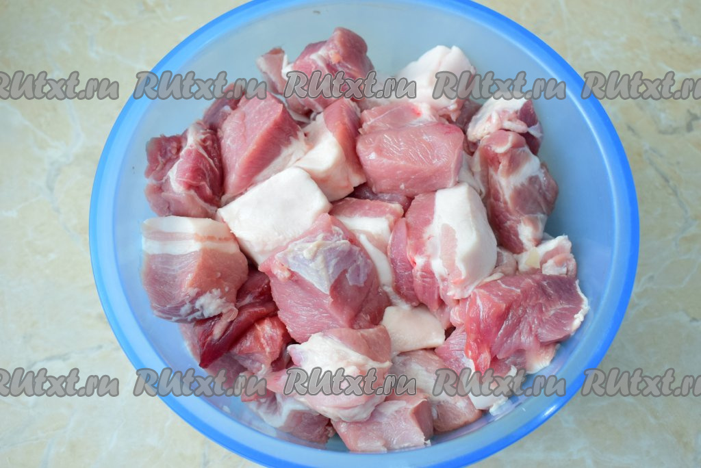 Для приготовления шашлыка выбирайте свинину с небольшим количеством сала. Такой шашлык будет более сочным и мягким. Для шашлыка подойдёт свиная шея или мясная грудинка. Мясо не должно быть замороженным, так как при разморозке из него уйдёт сок. Выбранное мясо нарежьте на кусочки, примерно, одинакового размера и сложите в чашу, в которой оно будет мариноваться.