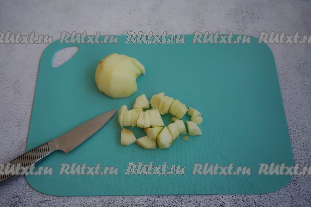 Пока варится наша пшённая каша, моем, очищаем от кожуры и семян, нарезаем небольшими кусочками яблоко (я использовала сорт "Голден", но отлично подойдут и другие кисло-сладкие сорта, например, "Лигол" или "Глостер").