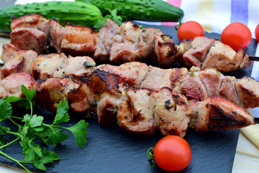 Вкусный, сочный, ароматный шашлык из свинины готов! Благодаря маринованию в киви, такое мясо остаётся мягким даже в холодном виде на следующий день.