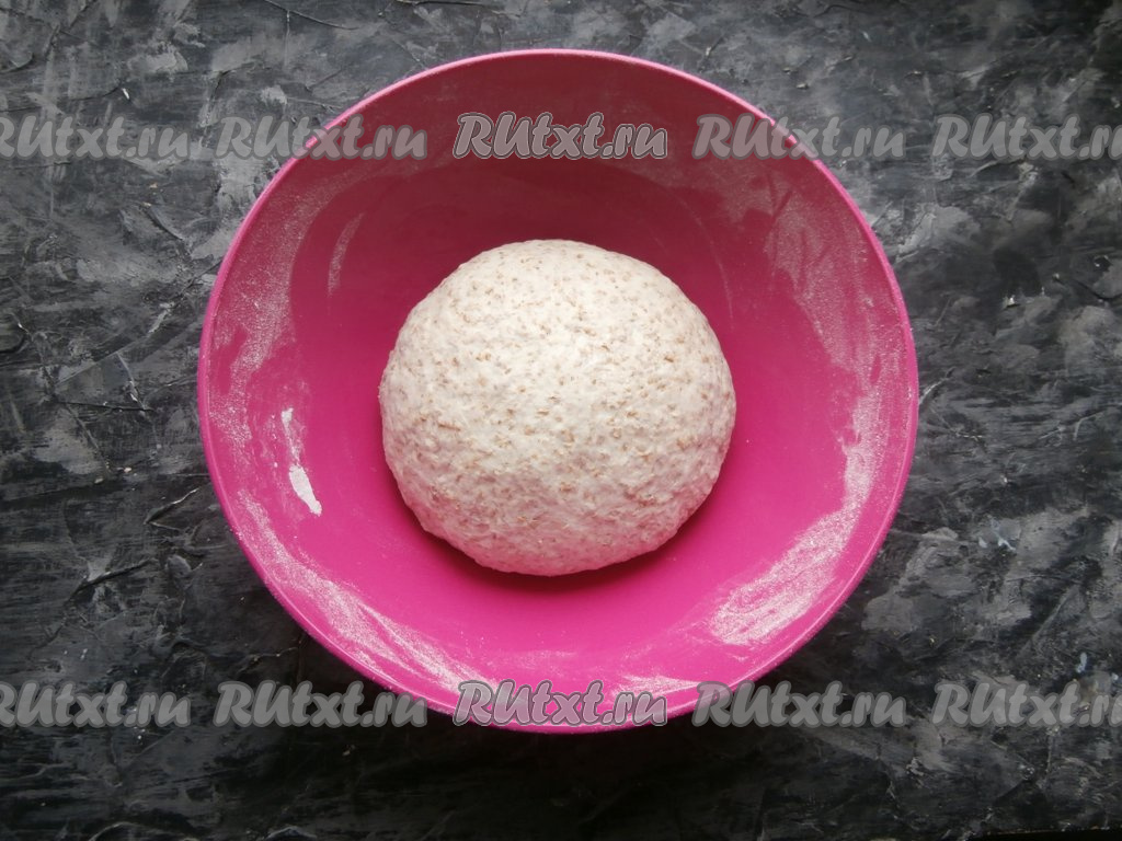 И далее, вливая оставшуюся тёплую воду, замесить тесто, которое нужно вымешивать минут 10, чтобы оно практически не липло к рукам, но оставалось мягким и нежным. Тесто поместить в миску, смазанную немного растительным маслом, накрыть плёнкой и оставить в тепле на 1 час.