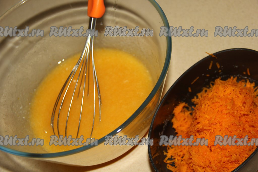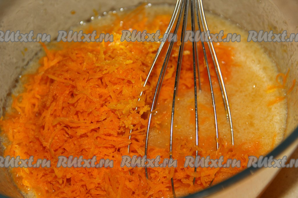 В миску с яично-масляной смесью добавить натёртую тыквы и цедру, перемешать венчиком.
