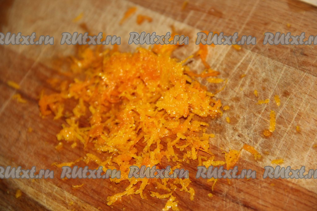 Тщательно вымыть апельсин и аккуратно снять с него цедру (снимая оранжевую часть кожуры, старайтесь не затрагивать белый слой, находящийся под ней).
