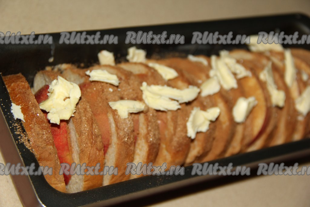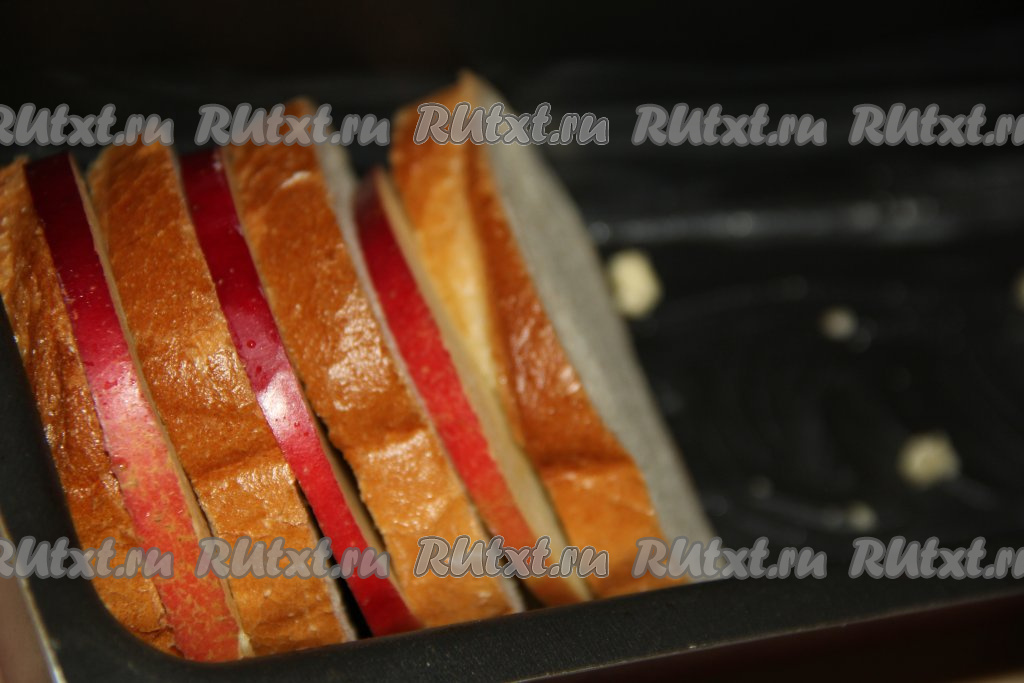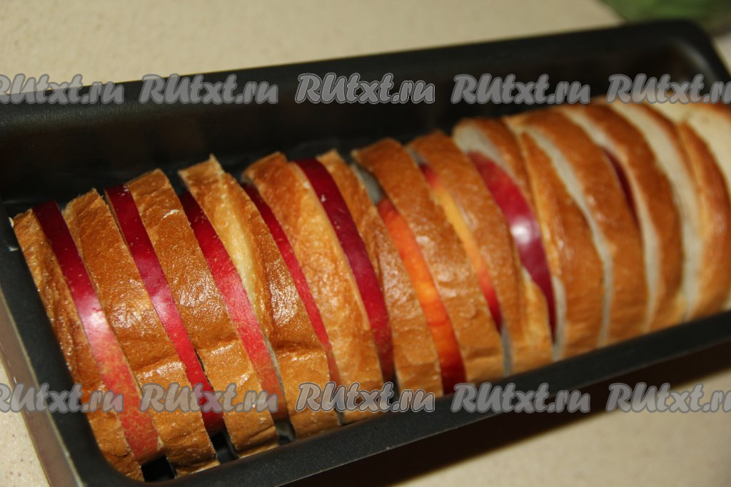 Заполнить форму кусочками батона, чередующимися с яблоками.