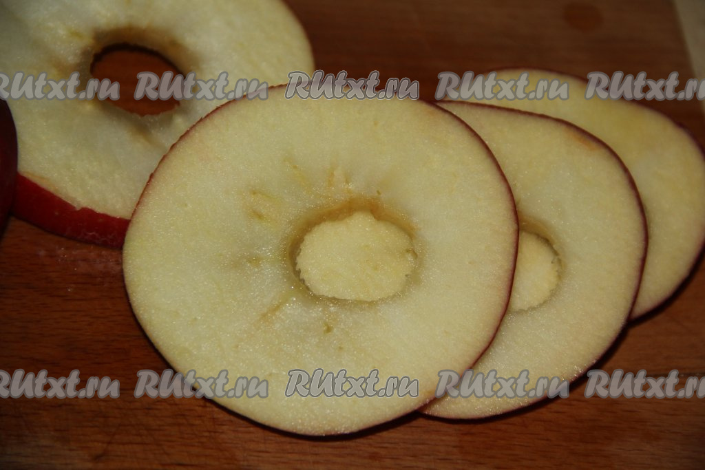 Яблоки вымыть, удалить из них сердцевины и нарезать на кружочки.