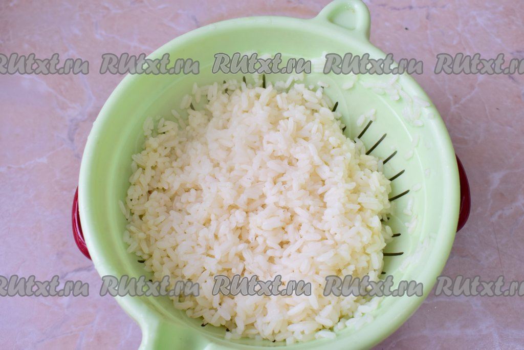 Готовые рисинки станут мягкими, но при этом они должны хорошо держать форму (не должны быть разваренными). Откиньте готовый рис на дуршлаг и оставьте на некоторое время, чтобы стекла лишняя жидкость.
