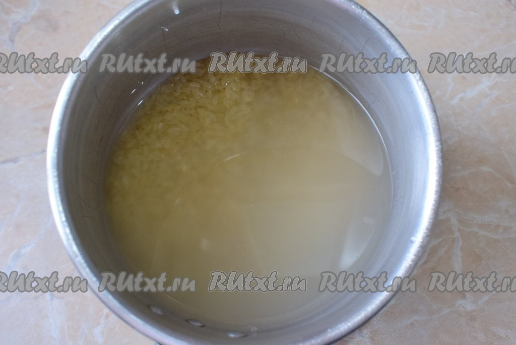 Для приготовления риса промойте его несколько раз в холодной воде. В кастрюле вскипятите воду (рис для этого гарнира я варю в достаточно большом количестве воды), выложите промытый рис. Дайте воде с рисом закипеть, подсолите и варите до готовности риса на небольшом огне. В среднем рис варится с момента закипания 20-25 минут (продолжительность варки во многом зависит от сорта риса, поэтому точно время варки смотрите на упаковке).