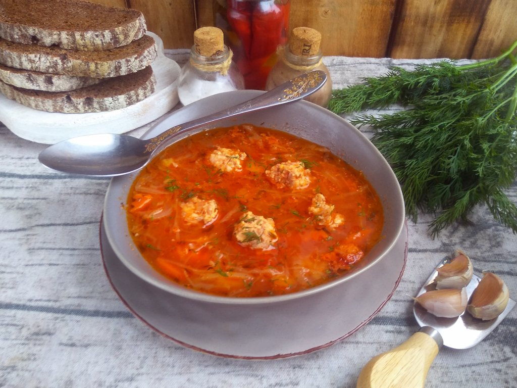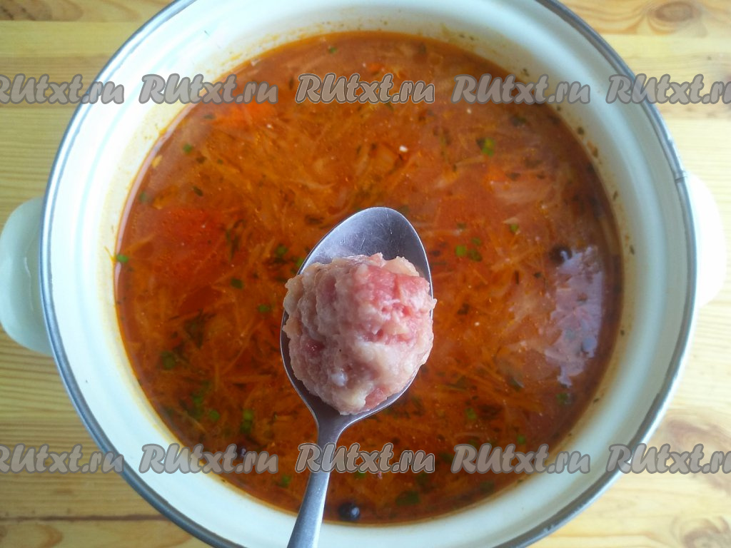 Если у вас нет времени на варку бульона, а хочется порадовать и себя, и своих близких вкусным, сытным первым блюдом, тогда приготовьте борщ с фрикадельками. Фарш для фрикаделек можно взять любой, я предпочитаю смешанный фарш из свинины с говядиной. Борщ получается очень аппетитным, его насыщенный вкус неизменно нравится и детишкам, и взрослым!