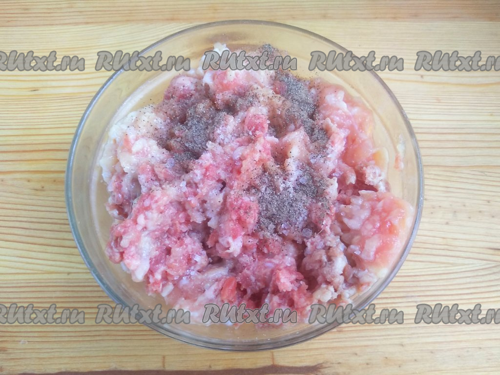 Из фарша сформировать небольшие шарики (фрикадельки) диаметром около 2 см. Когда борщ с капустой проварится 10-12 минут, выложить в него фрикадельки, добавить соль, душистый перец, лавровый лист и чёрный молотый перец. Продолжить варить на среднем огне до всплытия фрикаделек, затем проварить ещё 5 минут и снять с огня. Накрыть кастрюлю крышкой и оставить на 10 минут, чтобы борщ настоялся.