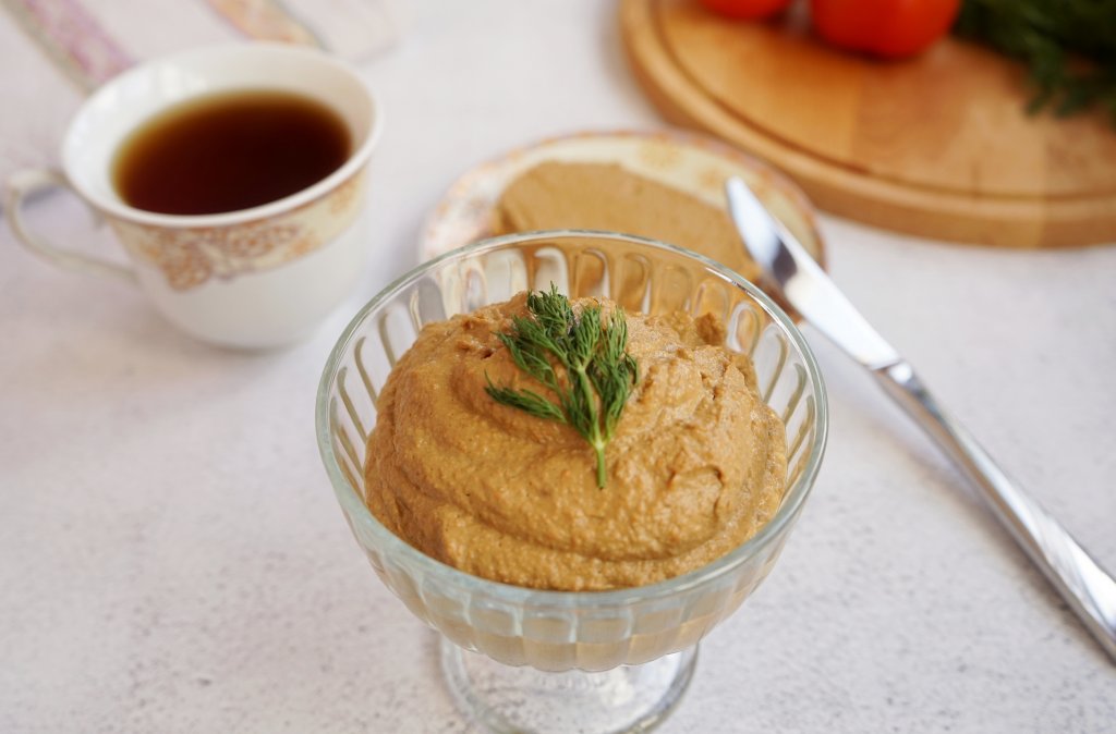 Всё, вкусный и невероятно нежный паштет из куриной печени со сливочным маслом готов. Осталось дать ему охладиться хотя бы 30 минут (а лучше часа 1,5-2) в холодильнике и можно подавать к столу. Такой печёночный паштет, намазанный на кусочек хлеба, станет отличным завтраком или перекусом, а если подать его, например, в тарталетках, то у вас будет прекрасная закуска для праздничного стола!