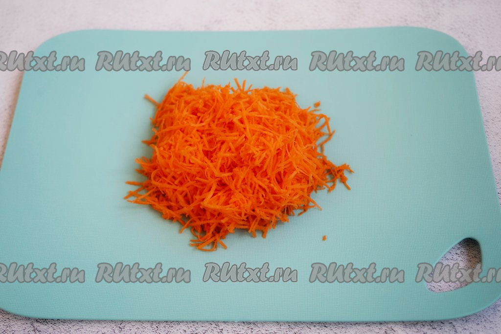 Далее моем, чистим и натираем на средней тёрке 1 крупную морковь.