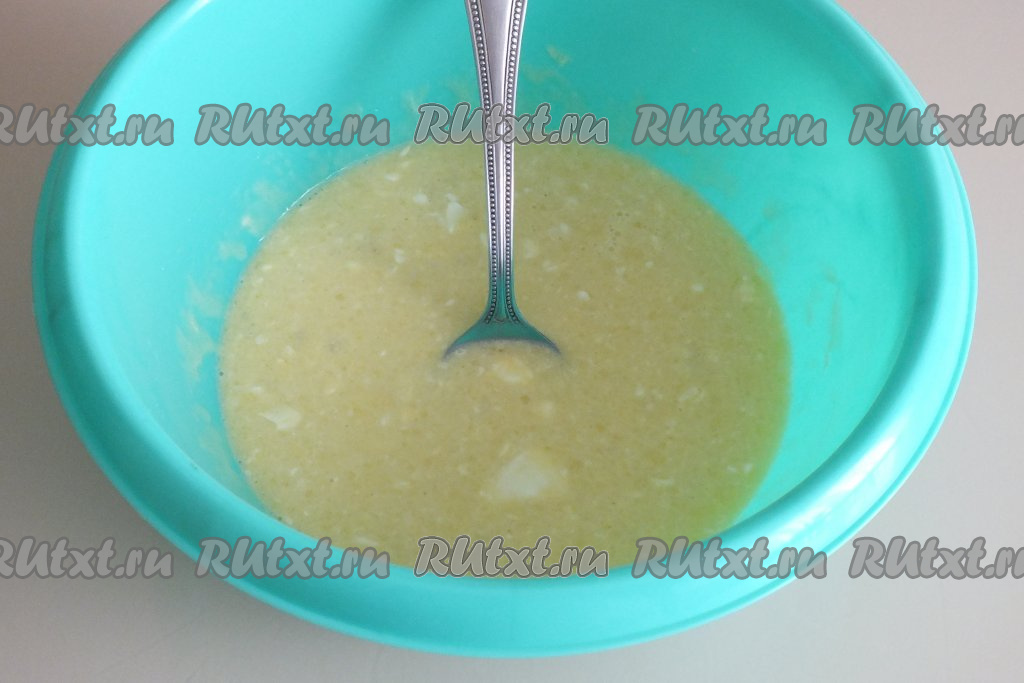 Начните перемешивать получившуюся массу ложкой. Как только станет трудно перемешивать, добавьте 0,5 стакана муки (в процессе дальнейшего замеса добавляйте муку по мере необходимости).