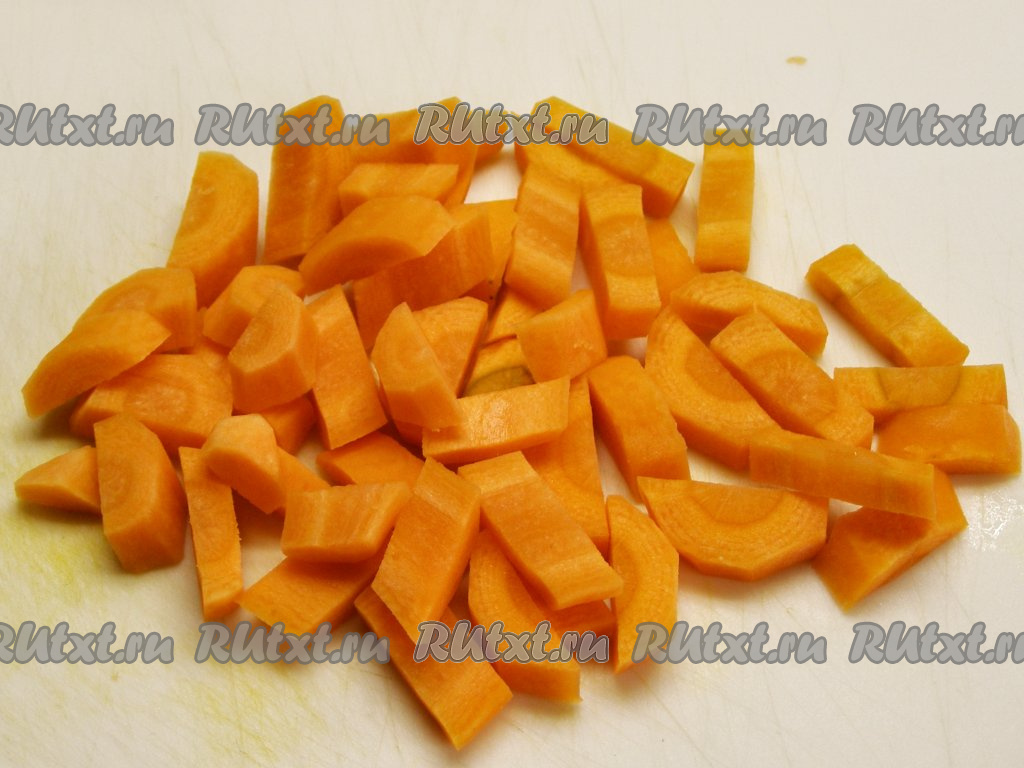 Морковь моем, чистим и нарезаем некрупными ломтиками (или кружочками). Можно натереть её на тёрке.