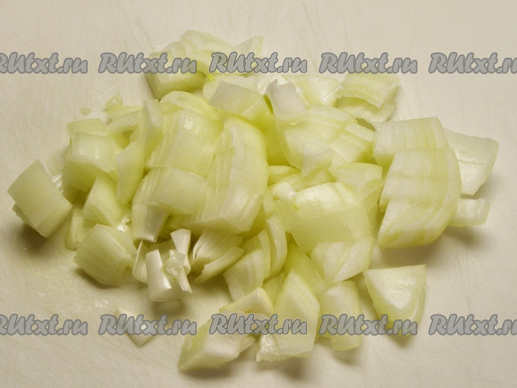 Луковицу очищаем от шелухи, нарезаем крупными кубиками.