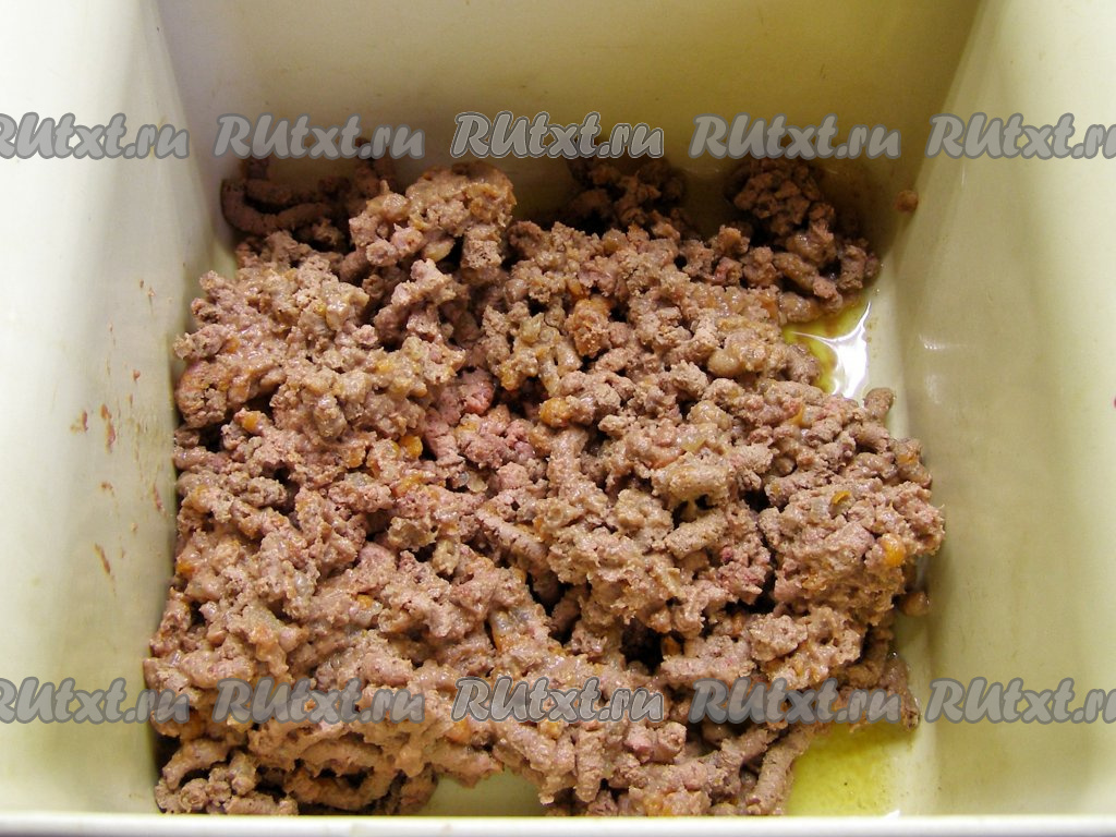 Остывшую печень, обжаренную с морковью, луком и сливочным маслом, пропускаем через мясорубку. Если вы хотите, чтобы паштет получился более нежным и однородным, то можно прокрутить печень через мясорубку дважды.