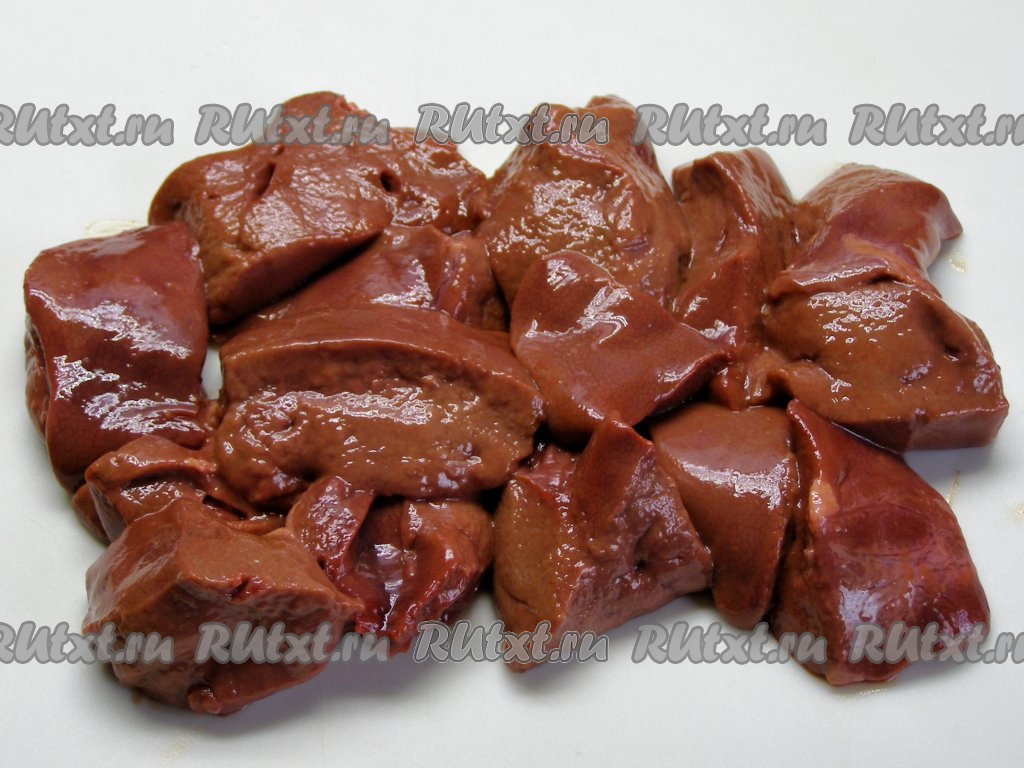 Свиную печень споласкиваем холодной водой, просушиваем бумажным полотенцем и нарезаем на достаточно крупные кусочки.