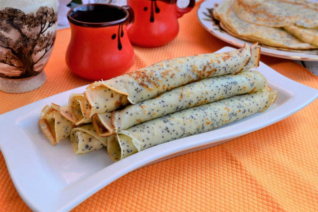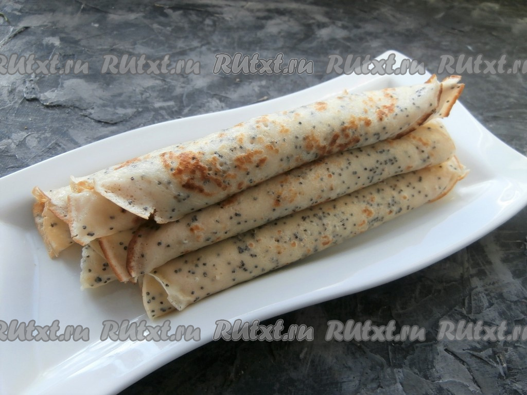 Рекомендую попробовать очень вкусные маковые блины, которые готовятся просто и быстро. Блинчики получаются тонкими, нежными, особую нотку придаёт им мак, который приятно хрустит на зубах. Подавать такие блины лучше всего с мёдом, но можно и с вареньем, джемом или любым сиропом. Также их можно начинить любой начинкой, которая вам нравится, как сладкой, так и несладкой (если планируете готовить с несладкой начинкой, тогда в тесто нужно добавить меньше сахара и не использовать ванильный сахар). Приготовьте маковые блинчики и они, наверняка, придутся вам по вкусу!
