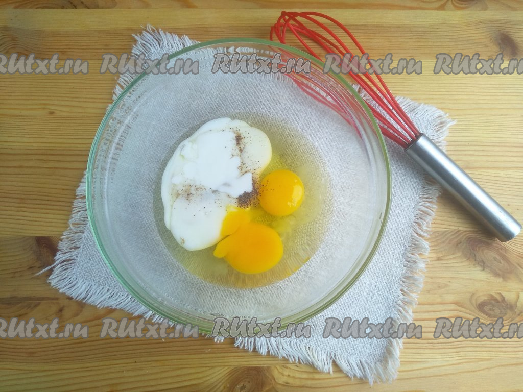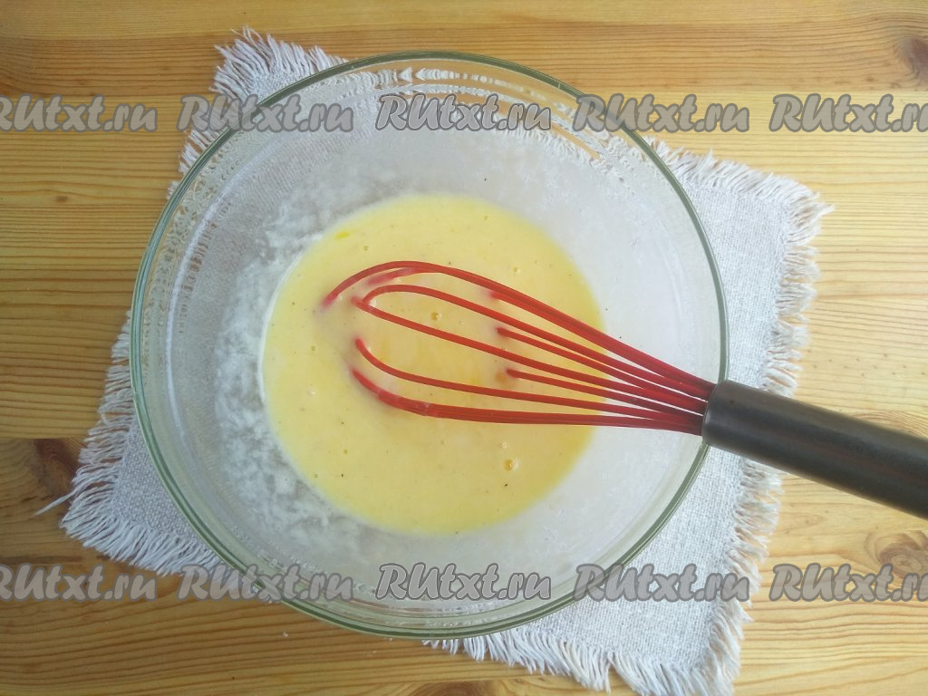 Яично-кефирную смесь перемешать до однородности венчиком.