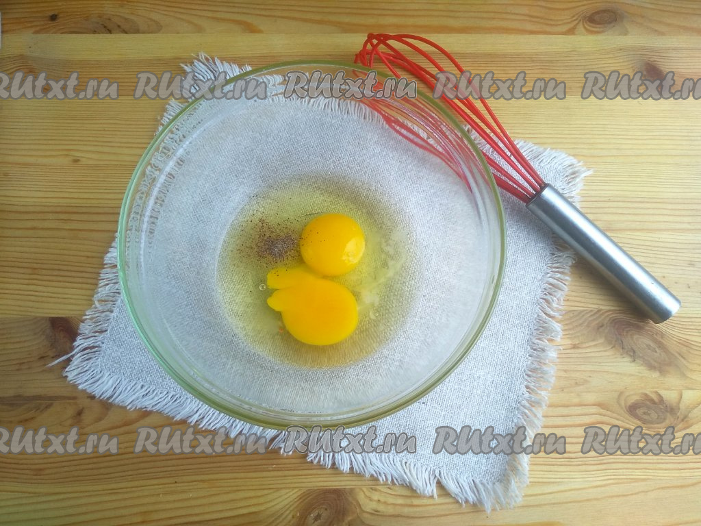Яйца промыть в тёплой воде, разбить в миску, посолить и поперчить.