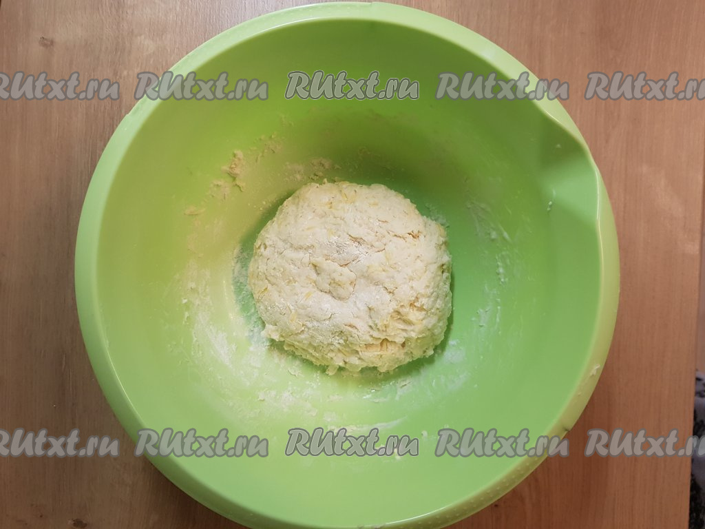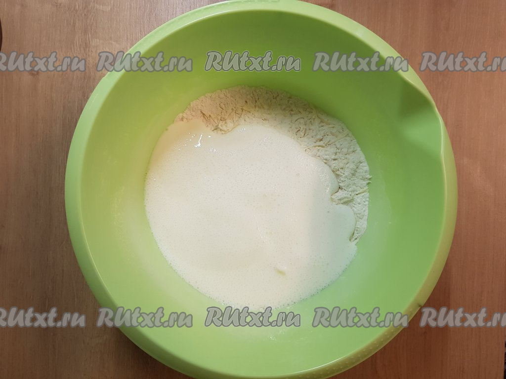 Тщательно перемешать ложкой все ингредиенты, затем вымесить тесто (должно получиться слегка липкое тесто).