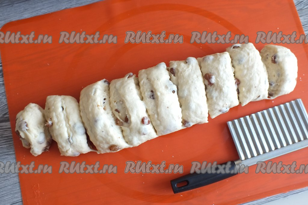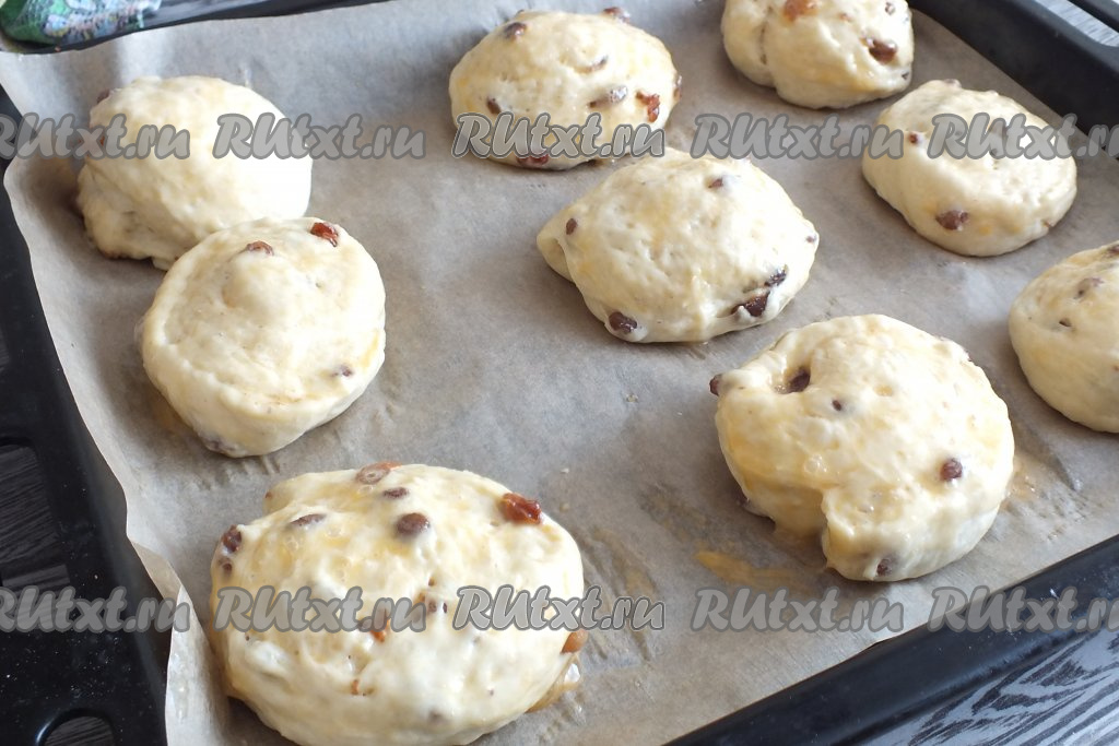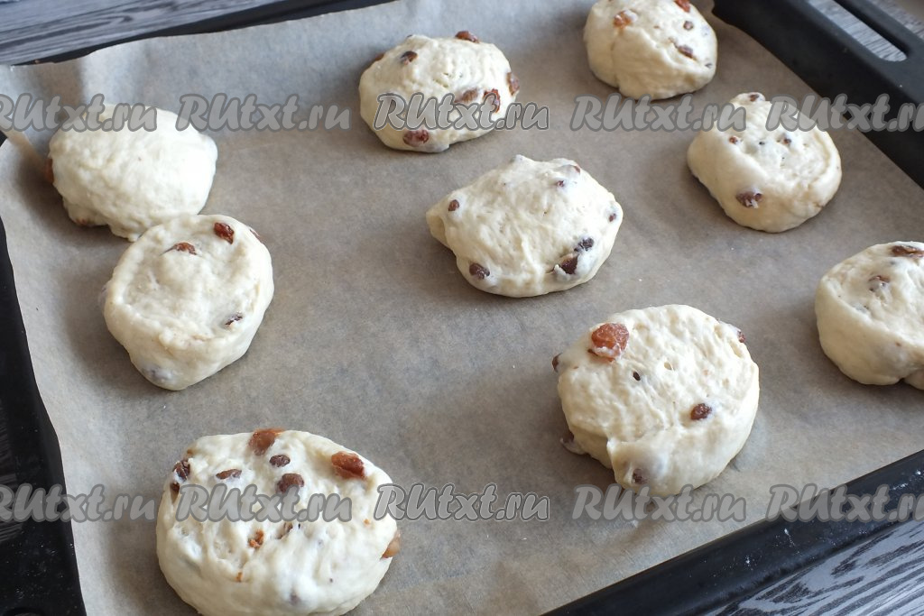 Противень застелите бумагой для выпечки. Выложите на расстоянии друг от друга заготовки булочек срезом вверх и оставьте на 15 минут для расстойки.