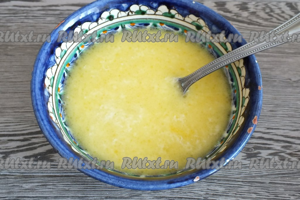 Соедините сливочное масло с молоком, разогрейте до полного растапливания масла (это можно сделать в микроволновки или на плите), оставьте охладиться до температуры 36-38 градусов.